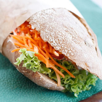 Green peppers, onions, mushrooms, olives, cheddar cheese, lettuce, tomatoes and mayonnaise.